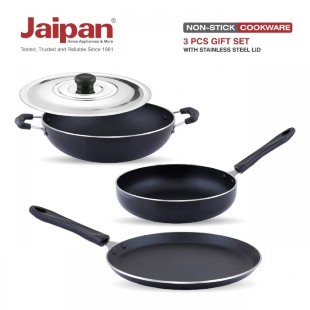 Jaipan 3pcs Non Stick Cookware Set with Stainless Steel Lid